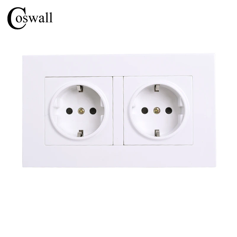 COSWALL Высокое качество стены Мощность Двойной разъем заземлен, 16A ЕС стандартный электрические розетки 146 мм * 86