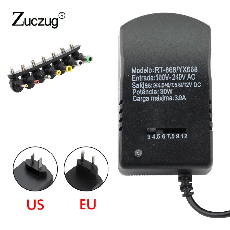 Универсальный адаптер питания Multi 3 в 6 в 9 в 12 В адаптер питания 3 6 9 12 в преобразователь напряжения кабель 7 вилки адаптеры 3A 30 Вт