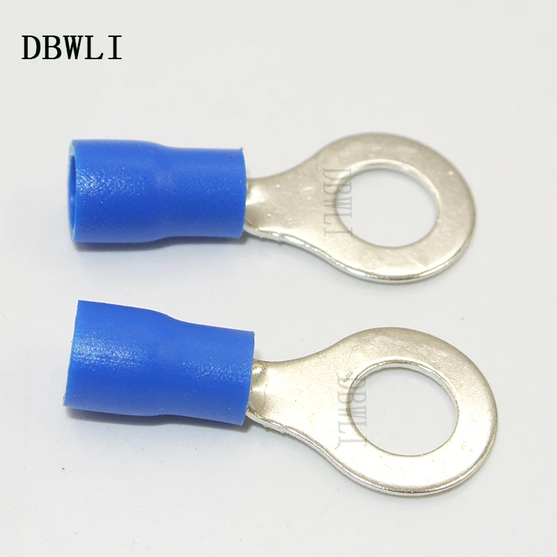 1/4 дюйма RV2-6 Синий Кольцо Изолированные Терминала провода Соединительный кабель 50 шт./упак. костюм 1,5-2,5 мм 1/4 "электрические обжимной вывод