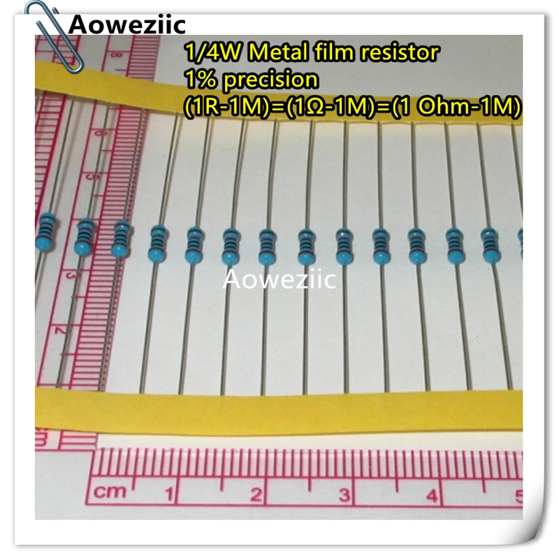 100 шт. 1/4 Вт 1% металлический пленочный резистор 1R-1M 100R 220R 330R 1K 1,5 K 2,2 K 3,3 K 4,7 K 10K 22K 47K 100K 6,8 K 9,1 K 1K5 2K2 3K3 4K7 ом