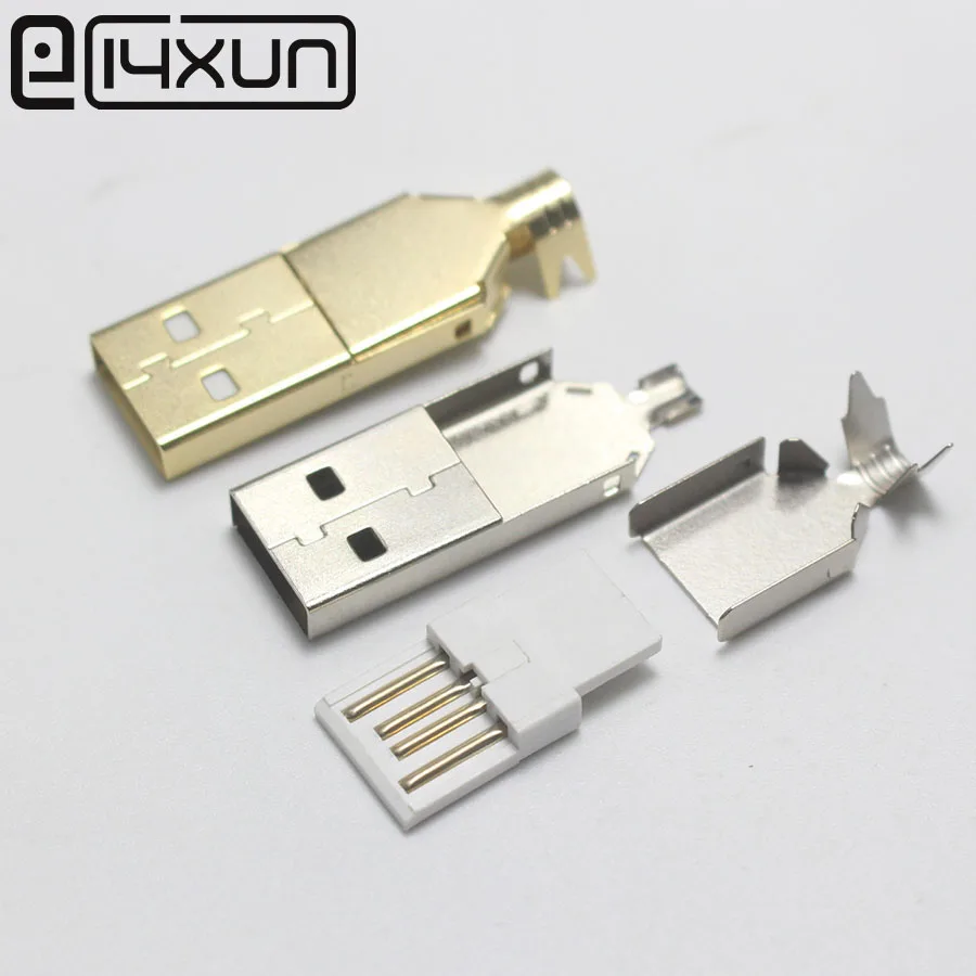 EClyxun 5 комплектов DIY USB 2,0 A Тип Штекерный разъем в сборке адаптер штепсельная розетка металлический корпус щит припоя провода