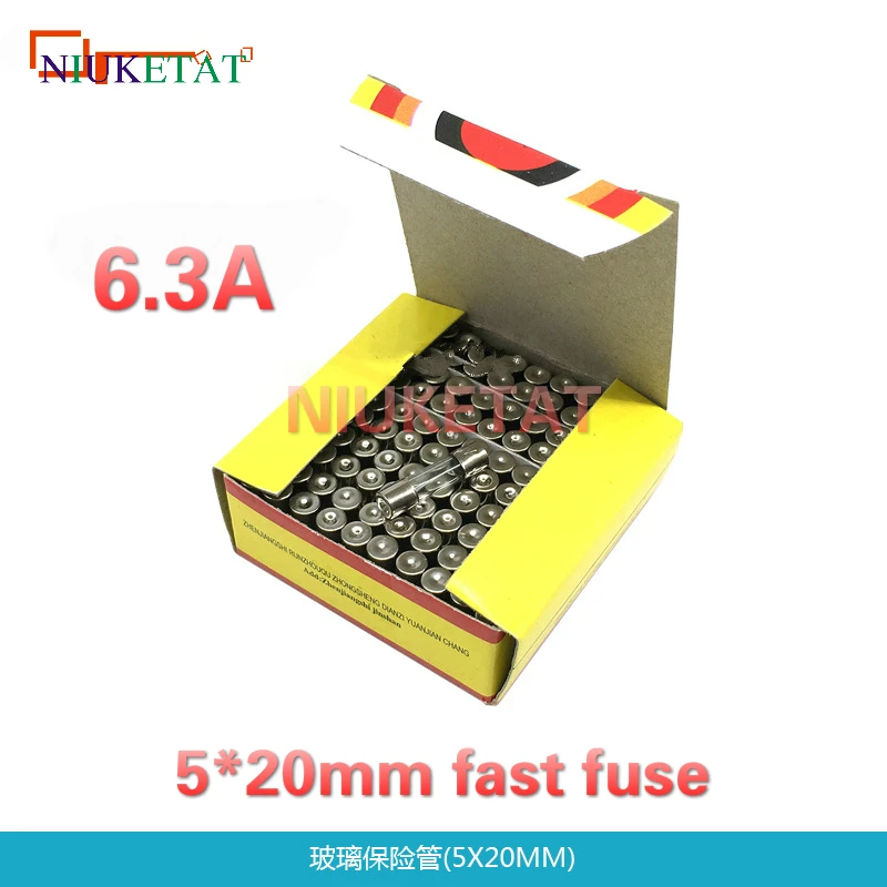 100 шт./кор. 5*20 мм 6.3a 250 В быстро предохранитель 5*20 f6.3a 6300ma 250 В Стекло предохранитель 5 мм * 20 мм новое и оригинальное