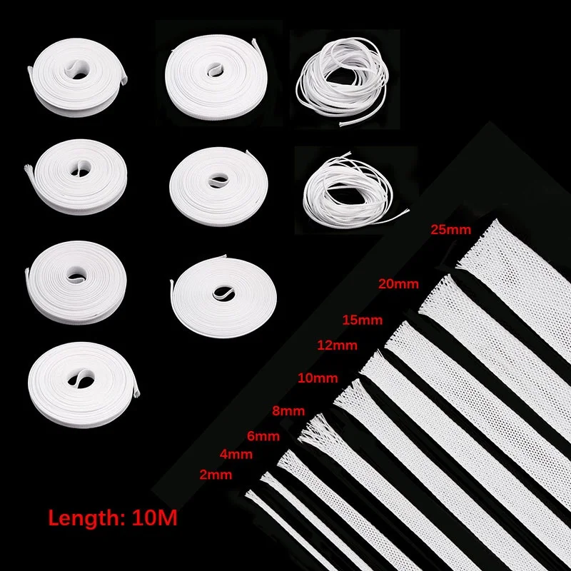 10 м 2/4/6/8/10/12/15/20/25 мм белый изоляционный Плетеный уплотнительный ПЭТ расширяемый кабель провода сальник защитный рукав