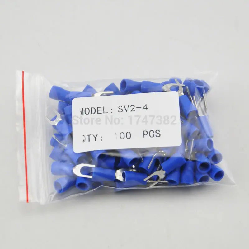 100 шт. SV2-4 изолированные вилка разъем провода электрические обжимной вывод 16-14 AWG