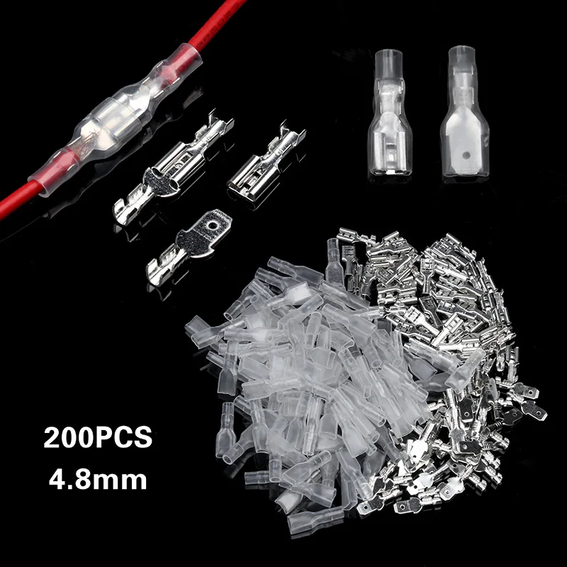 200 шт. 2,8/4,8/6,3 мм провода инструменты для наращивания волос Ассорти Комплект обжимной женский/мужской наконечники для обжима многожильного к...