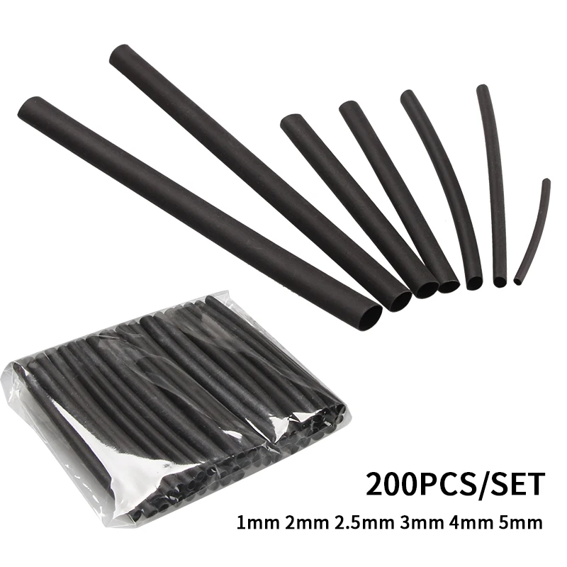 200 шт. термоусадочная трубка 1 мм 2 мм 2,5 мм 3 мм 3,5 мм 4 мм 5 мм усадочная трубка обмотка провода кабель комплект