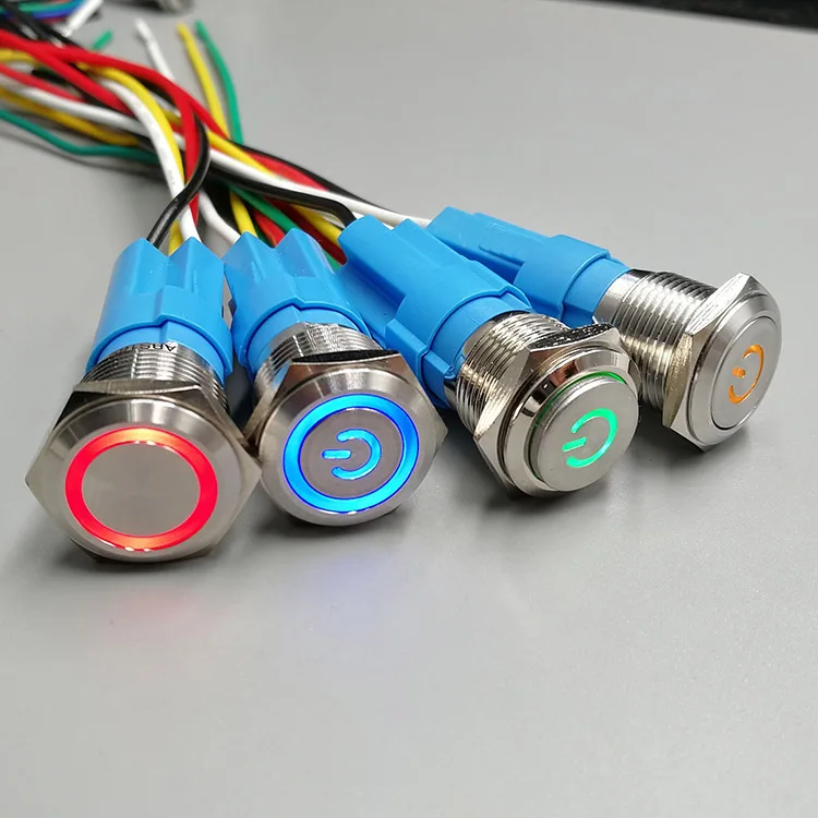1 шт. Авто красный синий белый свет 16 мм металлический кнопочный переключатель 5 В/12 В/24 В/220 В со светодиодной подсветкой высокий круглый водонепроницаемый для автомобильного рога