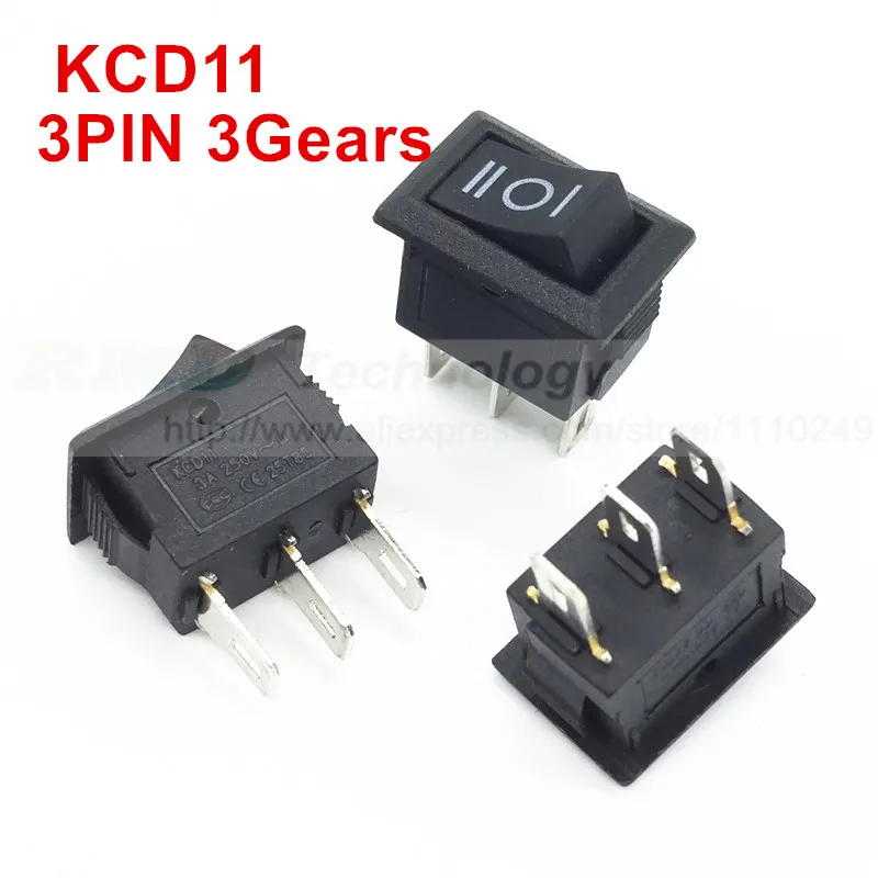10 шт./лот нежный кулисный переключатель kcd11 10*15 ac 250 В 3A 3 Булавки 3 Шестерни черный на/ выкл/на i/o SPDT кнопки в мини-лодки, бесплатная доставка