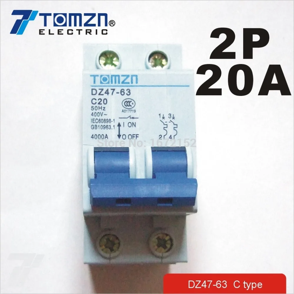 2 P 20A 400 В ~ 50 Гц/60 Гц автоматический выключатель AC mcb безопасности выключателя c типа