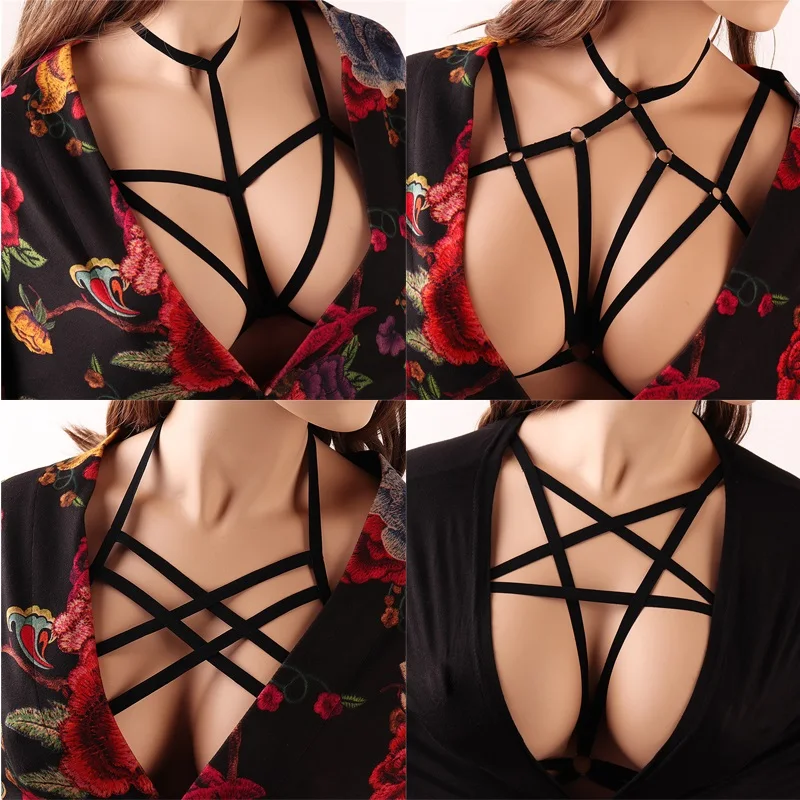 Для женщин одежда в стиле рейв пентаграмма бандаж, портупея нижнее белье в готическом стиле топы Фетиш сетчатый бюстгальтер ремня через одн...