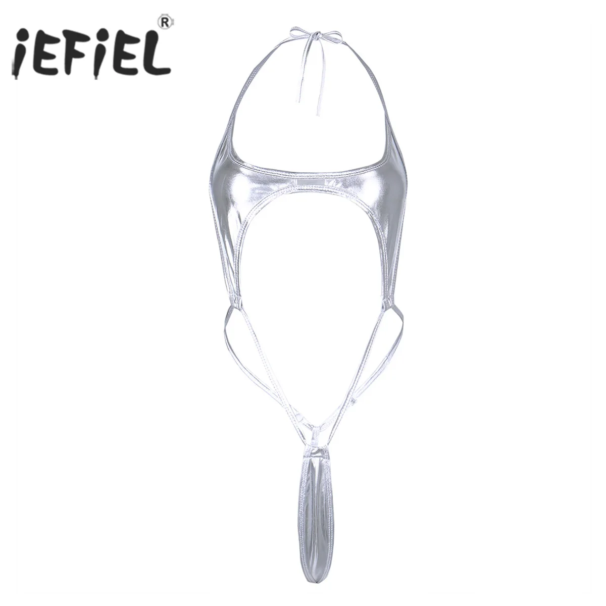 Ярко-розовая Женская одежда для нижнего белья из лакированной кожи с лямкой на шее, цельный Тедди, сексуальное женское белье с высоким вырез...