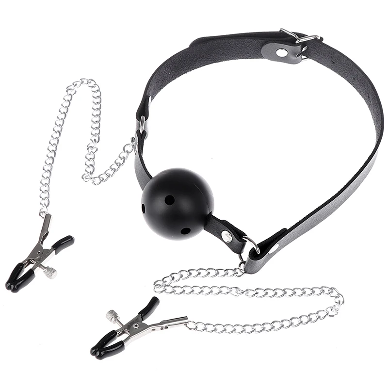 Сексуальные Игрушки из искусственной кожи рот кляп в форме шарика оральный секс с цепью Клип Зажимы для cосков Фетиш бондаж эротический сек...