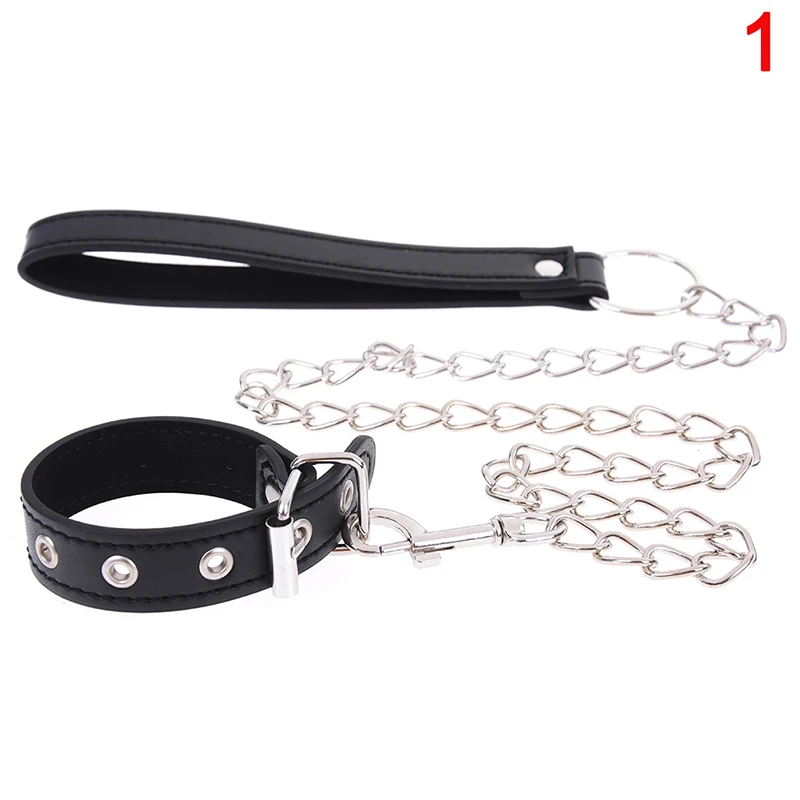 Male Cock Ring Chain Pu Leather Penis Ring Leash Chastity Devices Belt Cage Scrotum Testicle Cockring Stretcher Sex Toys For Men