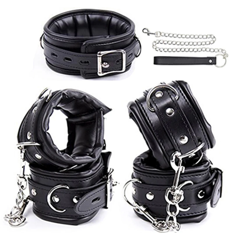 Из искусственной кожи мягкие манжеты на запястье и лодыжки манжеты и шеи воротник набор, БДСМ кожа связывание, аксессуары для косплея