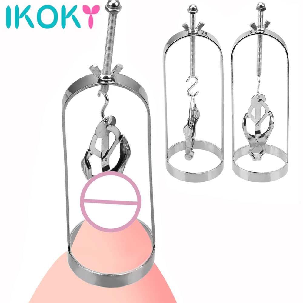 IKOKY 1 пара металлический ниппель зажимы, бондаж пытка играть грудные зажимы массаж удерживающее устройство Регулируемый стимулятор сосков