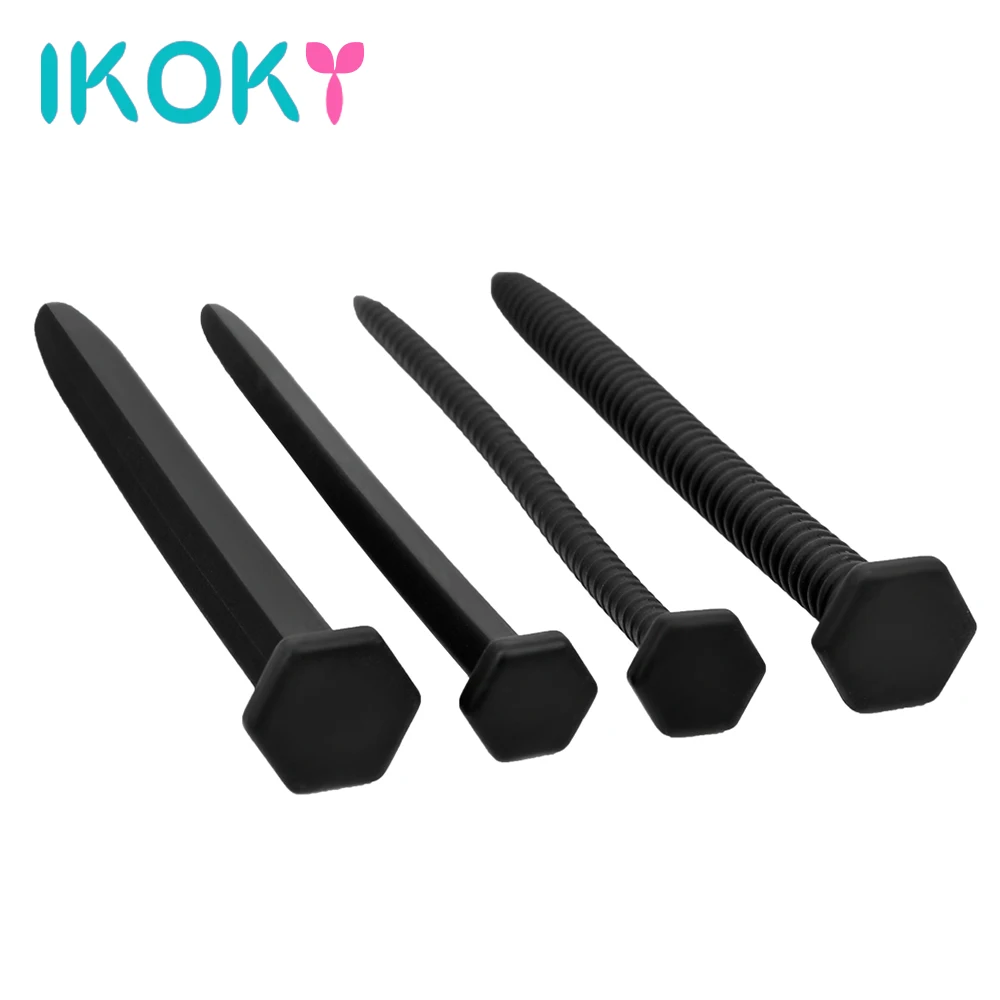 IKOKY уретральный катетер Растяжка пениса катетерное зондирование Винты дизайн эластичные силиконовые секс-игрушки для Для мужчин гей SM мужс...
