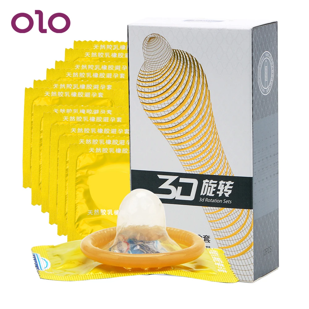 OLO 12 шт./кор. 3D вращающийся резьбовых латекса для полового члена, создающий защитную пленку Секс-игрушки для Для мужчин фруктовый аромат эяку...