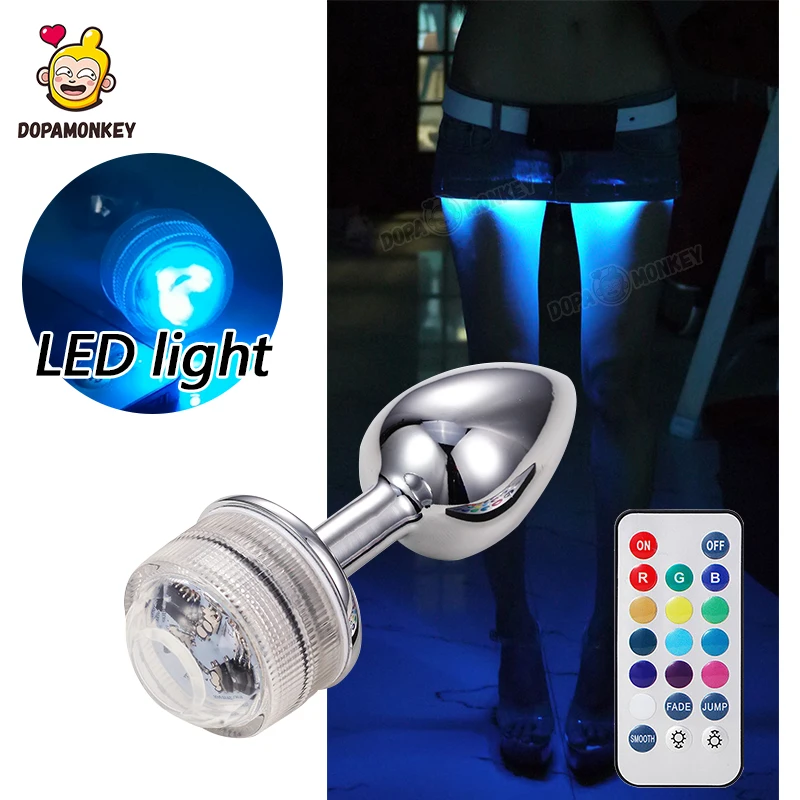 DopaMonkey, металлический анальный штекер, пульт дистанционного управления, светодиодный, светящаяся база, массаж простаты, гладкая Анальная пр...