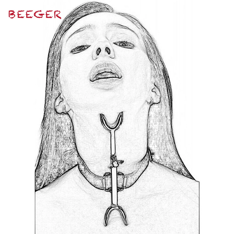 BEEGER ошейник для сексуальных игр кожа Нержавеющая сталь Вилка для еретиков Эротическое позиционирование бандаж секс-игрушки для мужчин/жен...