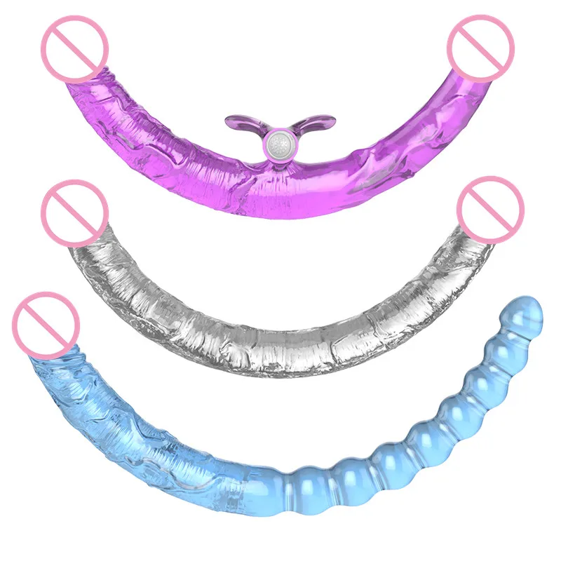 Двойной Дилдо гибкий мягкий гелевый отверстий влагалища и анала Для женщин гей лесби двусторонний член пенис искусственный пенис, секс игр...