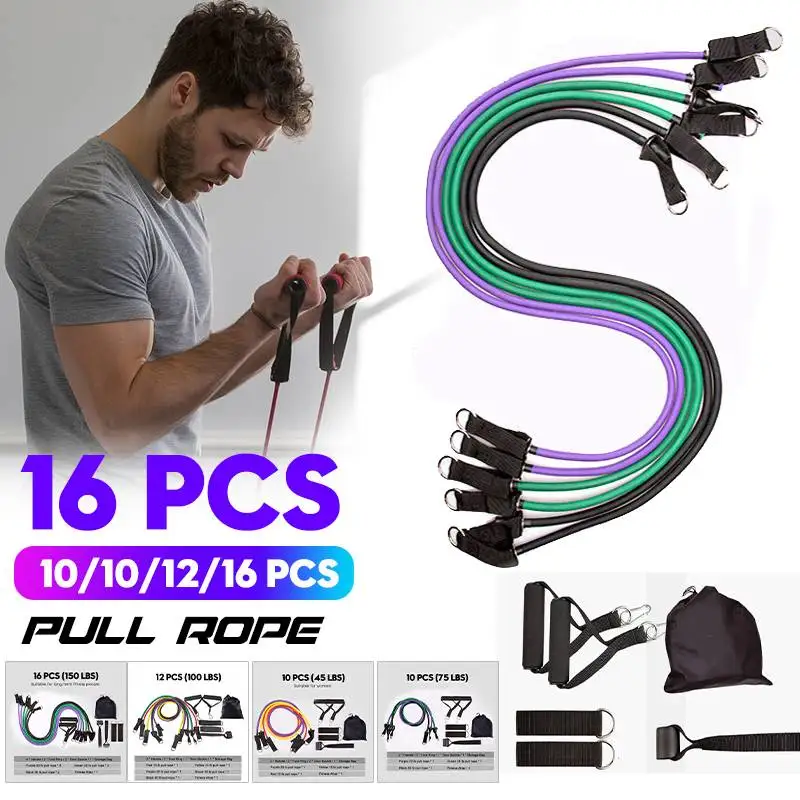 16 шт., Набор резинок сопротивления, расширитель для йоги, упражнений, фитнеса, резиновых трубок, эластичная Тяговая веревка