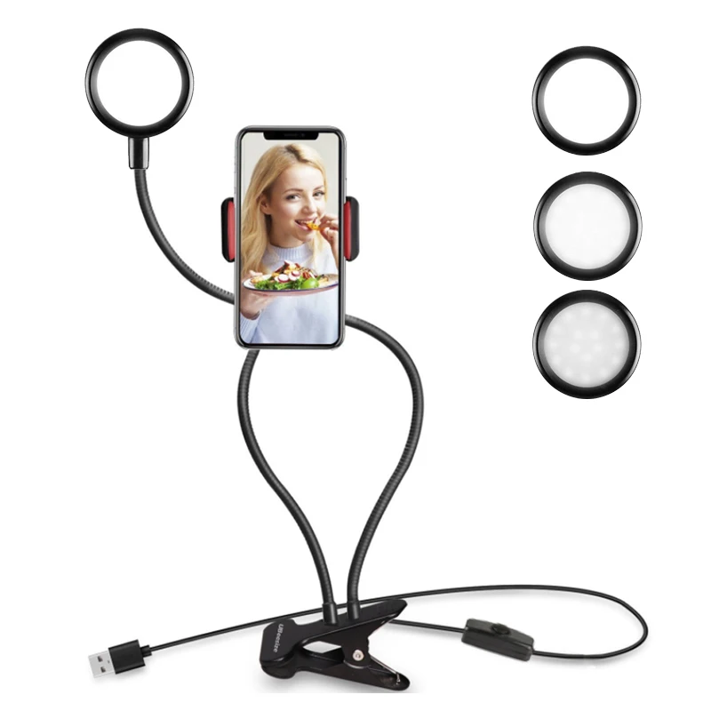 Универсальный кольцевой светильник для селфи с гибким держателем для мобильного телефона, настольная лампа с ленивым кронштейном, светодиодный светильник для офиса, кухни