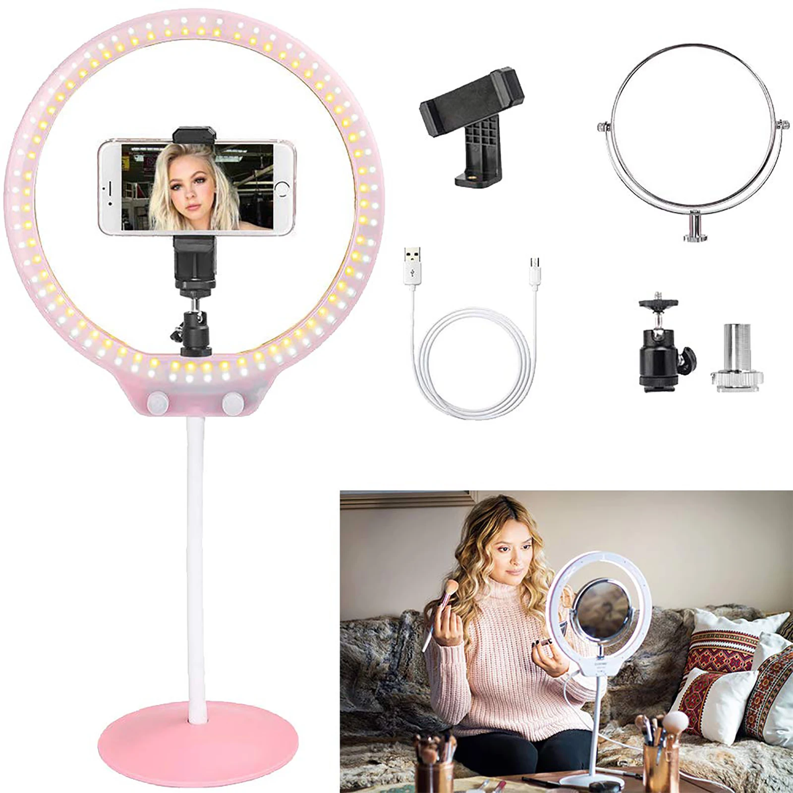 ZOMEI светодиодный селфи кольцо свет фотографическое Освещение Фото-, видеокамера студия гибкий стол Ringlight с подставкой для макияжа телефона