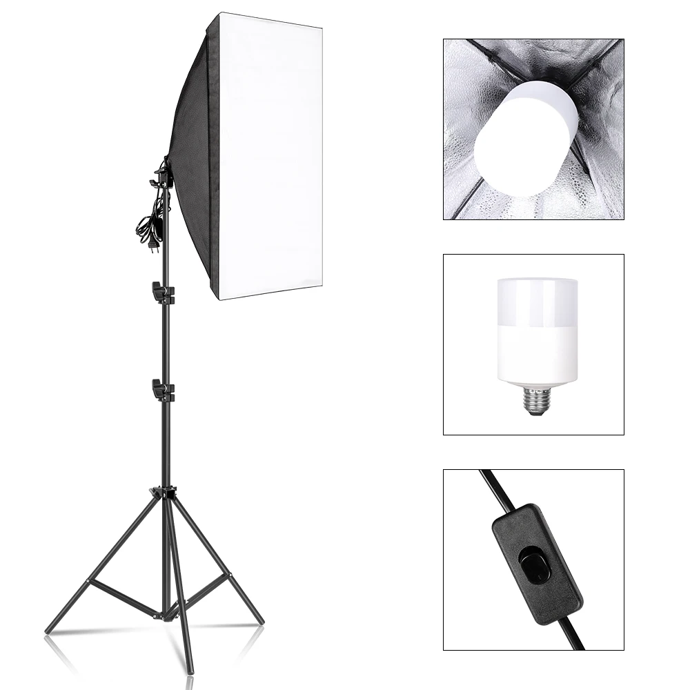 Софтбокс для студийной фотосъемки, Профессиональный светильник, 5070 см, E27, софтбокс, светильник, набор со светодиодными лампами и штативом 30 Вт