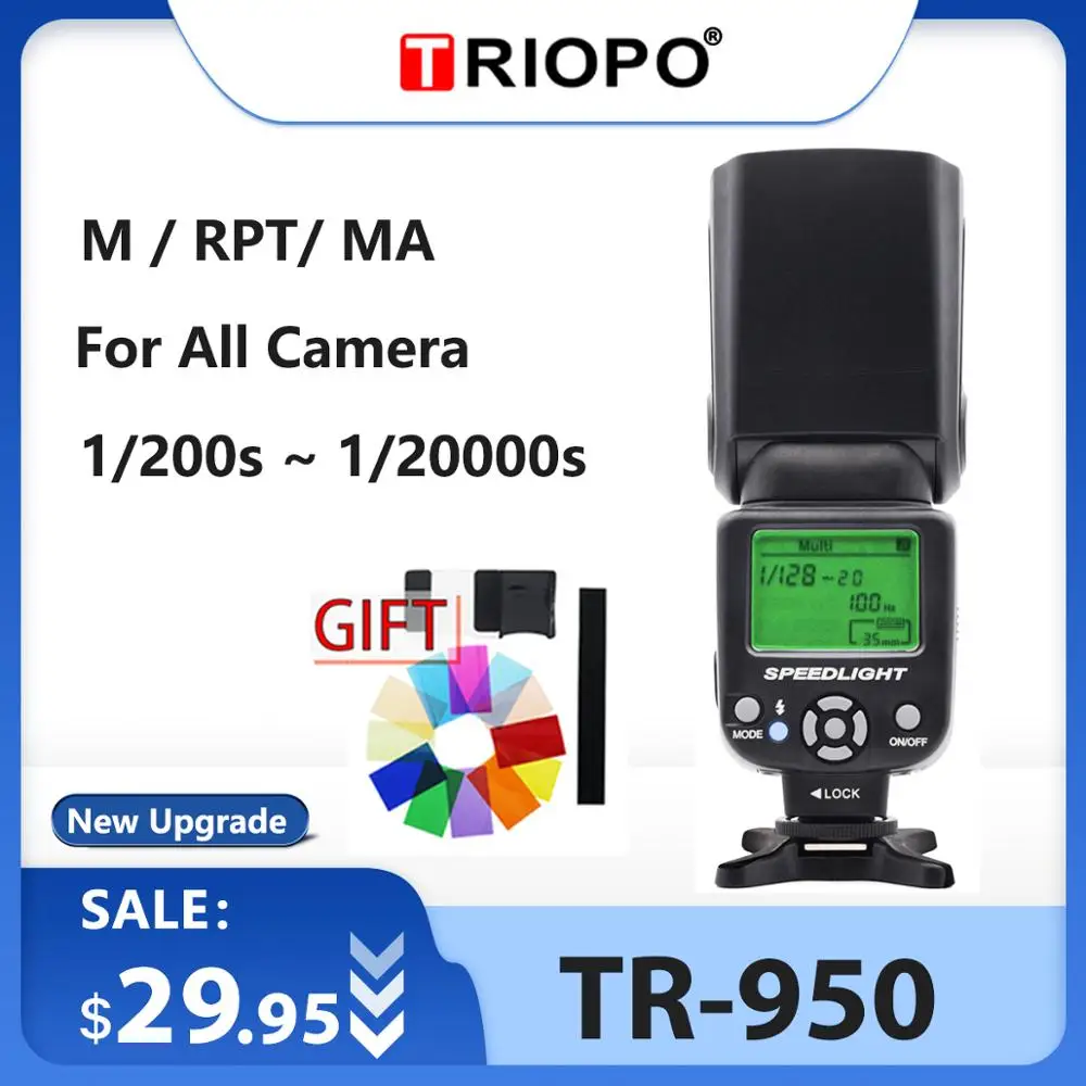 Triopo TR-950 Универсальный фотовспышка "Speedlite" для Fujifilm Olympus Nikon Canon 650D 550D 450D 1100D 60D 7D 5D цифровых зеркальных камер
