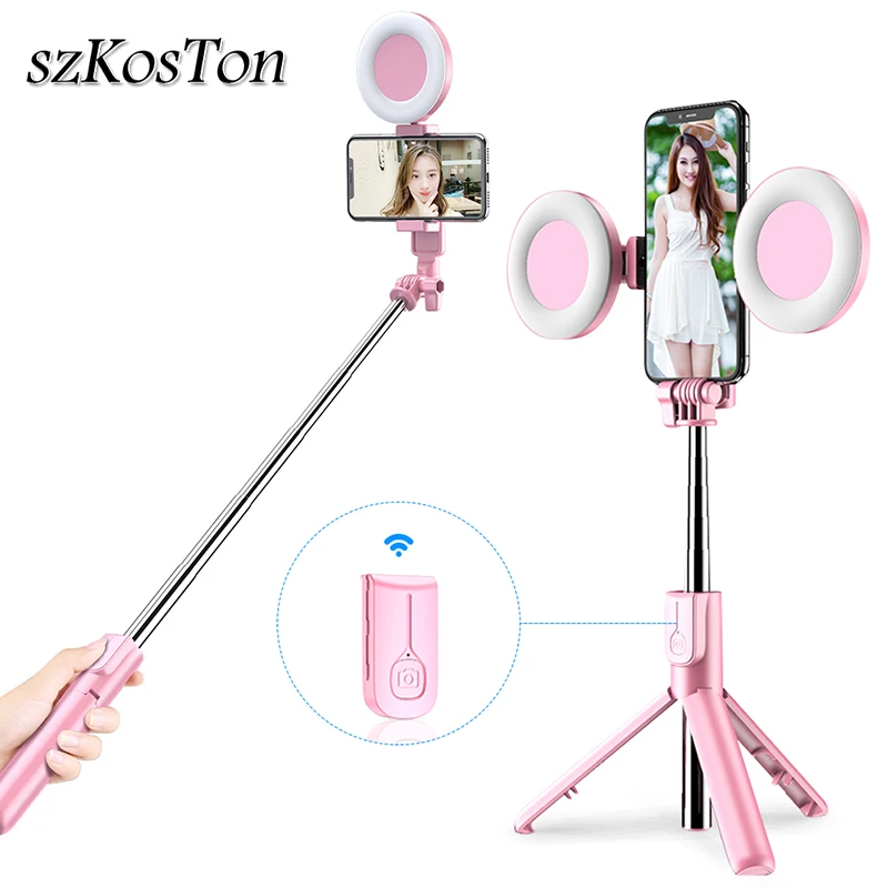 Новый беспроводной Bluetooth штатив для селфи, светодиодный складной Ручной штатив с кольцевым светом и дистанционным управлением затвором для iPhone 11 huawei