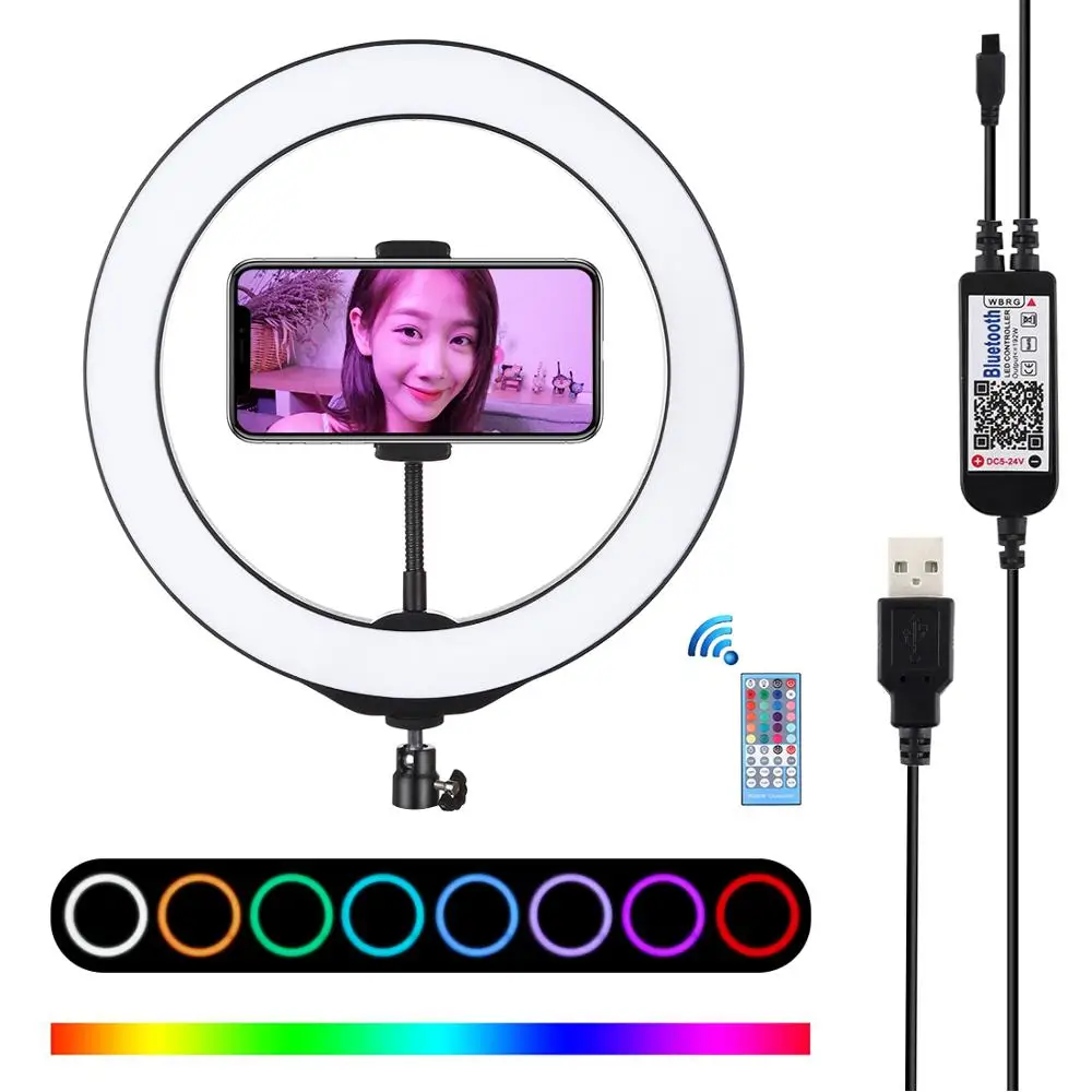 LANBEIKA 10,2 дюймов 26 см USB RGBW светодиодный светильник с регулируемой яркостью, кольцевой светильник Youtube для видеосъемки, светильник s & Phone Clamp & д...