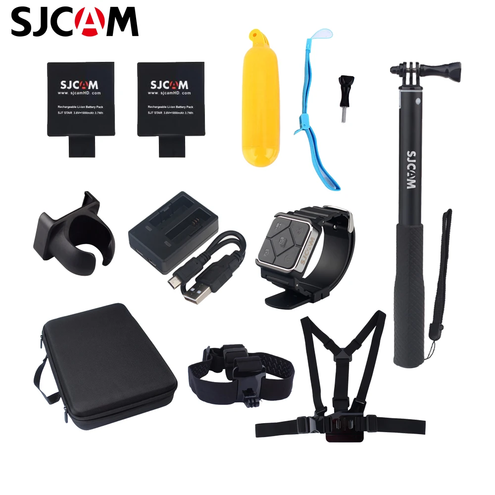 Аксессуары для камеры SJCAM SJ7 дополнительные 2 батареи + двойное зарядное устройство + монопод + дистанционные часы + держатель + ремень на голо...