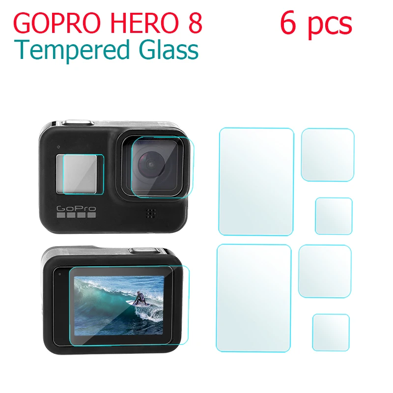 Защитная пленка для экрана для GoPro Hero 8, Черная защитная пленка из закаленного стекла + объектив + маленькая пленка для дисплея, аксессуары дл...