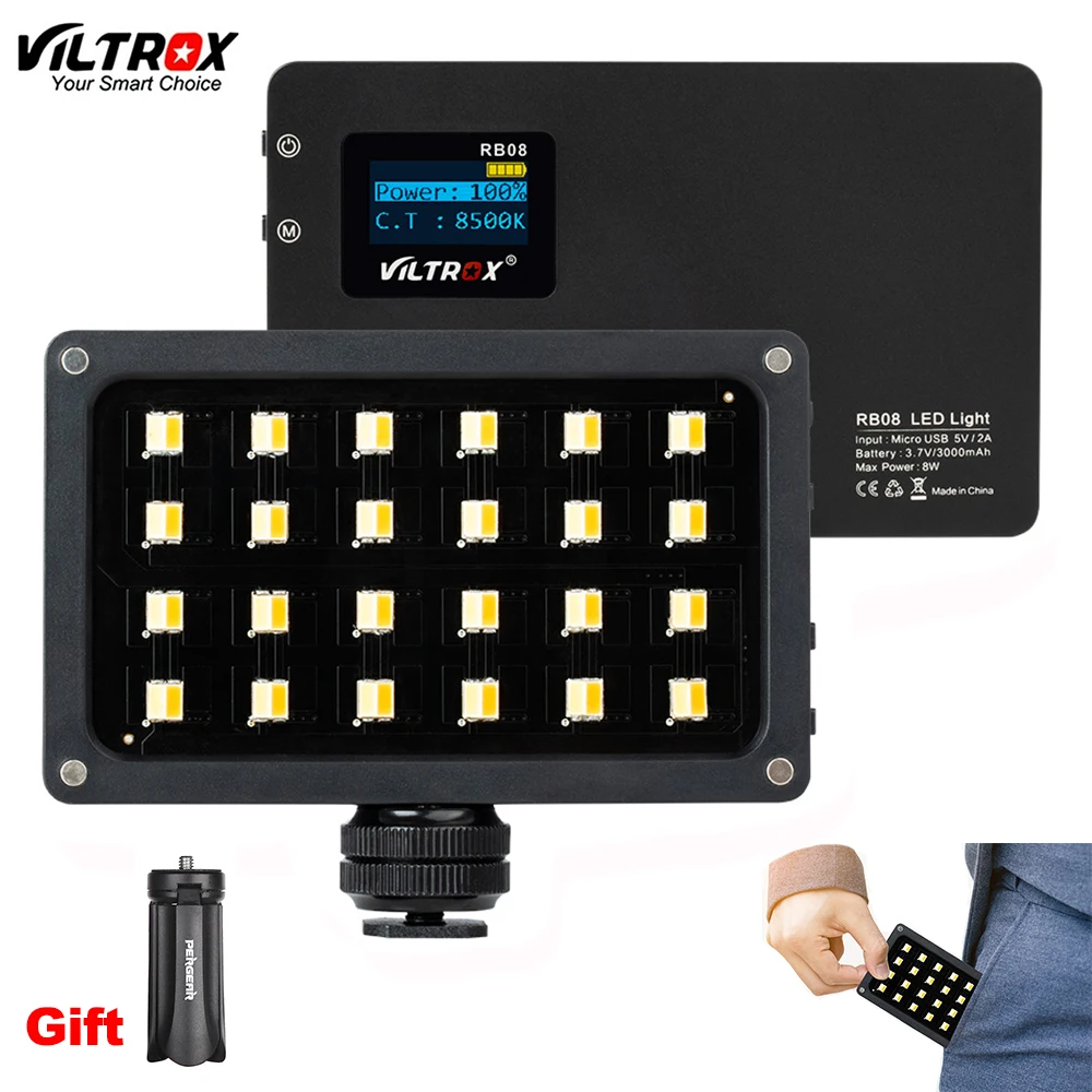 Viltrox RB08 портативный мини светодиодный свет заполняющий свет двухцветный 2500 K-8500 K с батареей для телефона камеры съемки студии Vlog