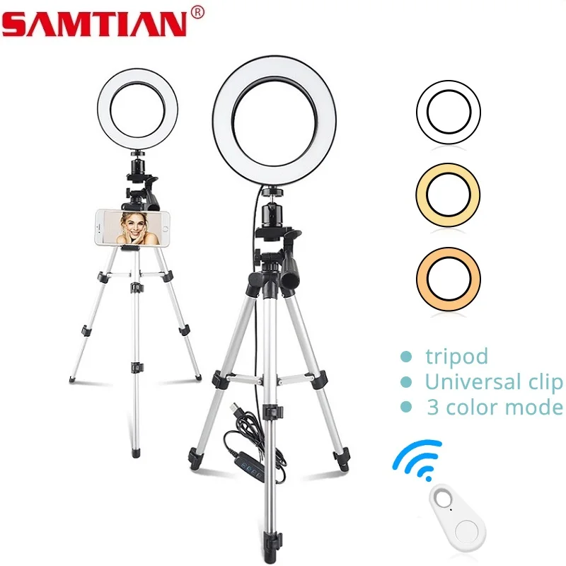 Samtian кольцевой светильник 6 "с регулируемой яркостью и usb-разъемом, круглая лампа со штативом, Bluetooth, для студийной фотосъемки, Видео, Фото, кол...