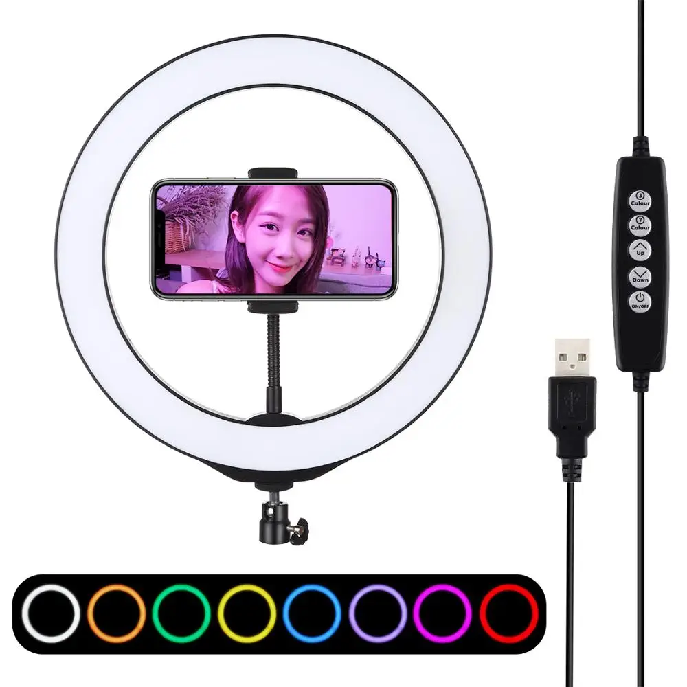 12 "затемнения светодиодный селфи кольцо свет фотостудия фотографии видео в реальном времени Макияж для мобильного телефона с держатель шта...
