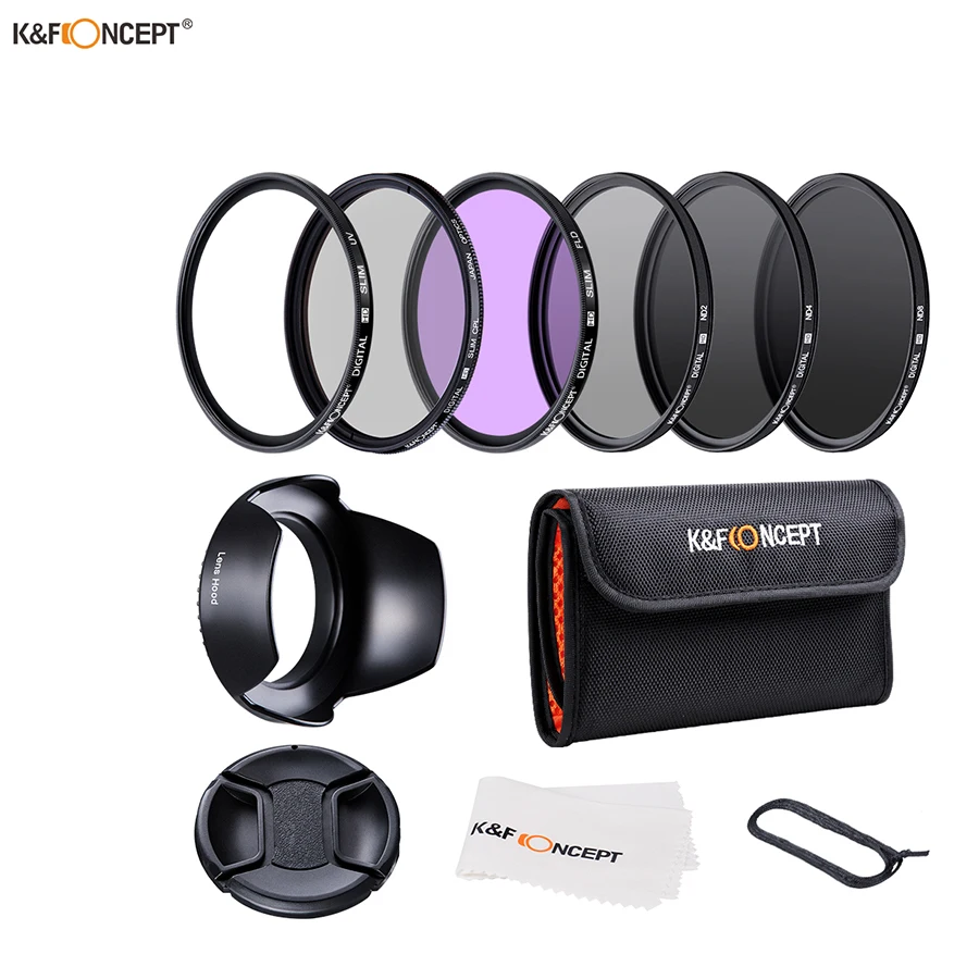 K&F CONCEPT 52/58/62/67/72 / 77mm UV CPL FLD ND2 ND4 ND8 Комплект Фильтров для объектива 6 Кусков с 4 подарками для Nikon Canon Sony Tamron и более зеркального фотоаппарата и об...