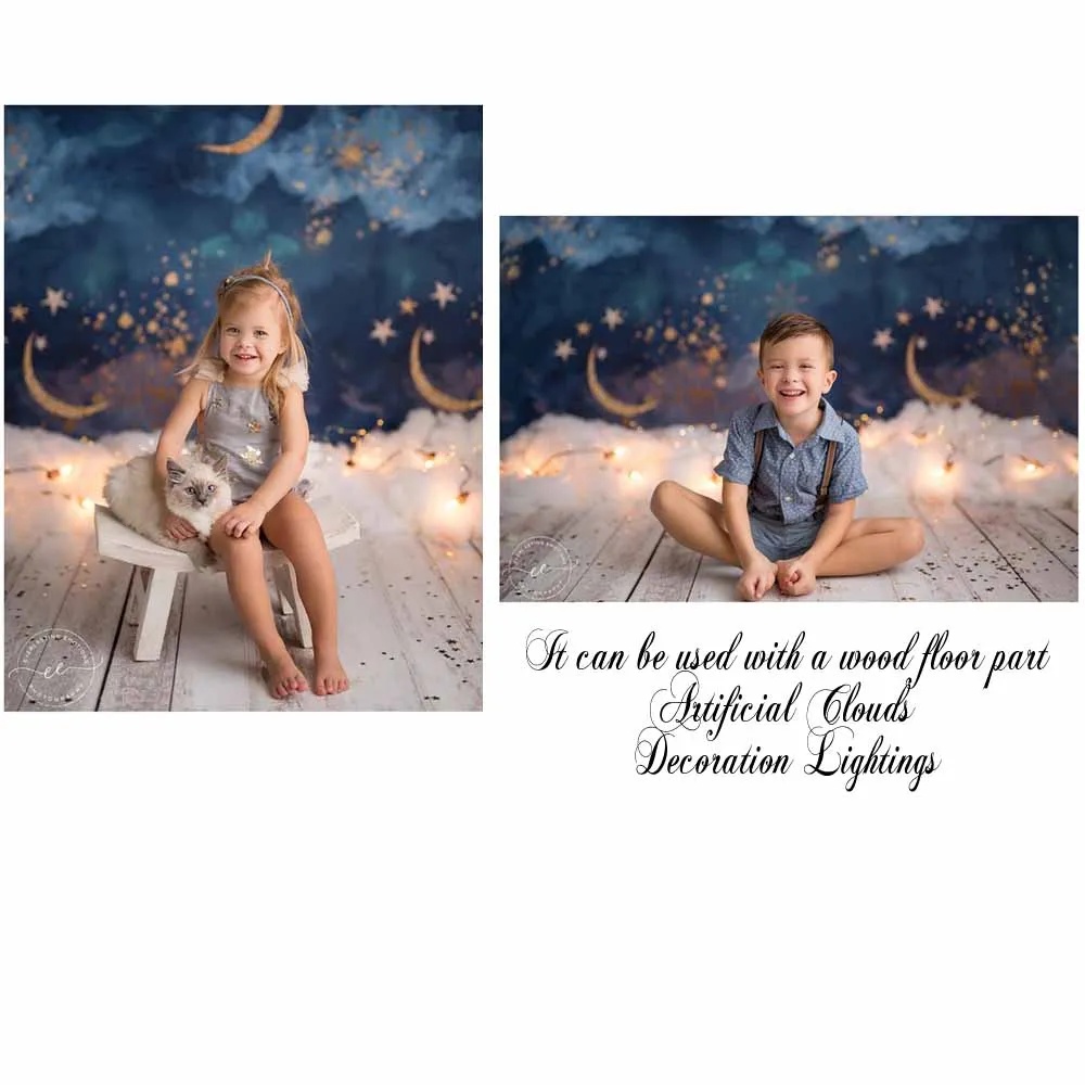 Золотой фон с Луной и звездами для фотосъемки новорожденных, детский фон для фотосъемки на день рождения, детский фон для студийной фотосъе...