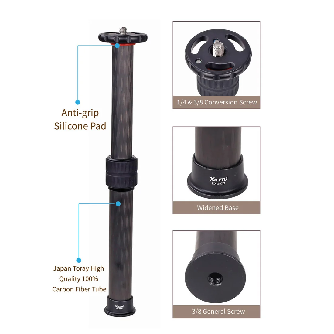 XILETU DX-282C удлинительная трубка для штатива из углеродного волокна 2 секции Центральная колонна удлинитель 5 кг 11 фунтов