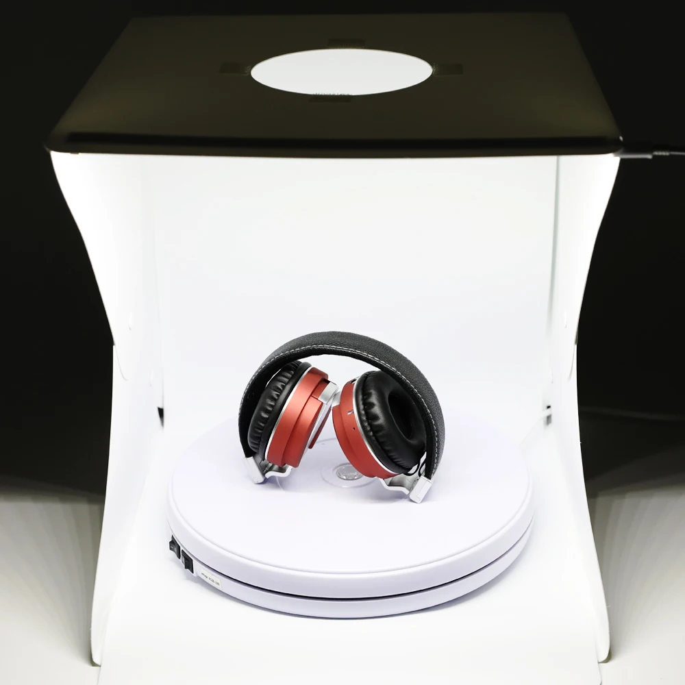 Фото 360 градусов Электрический вращающийся поворотный стол 10 "25 см светодиодный свет черный белый для фотостудии, максимальная нагрузка 10 к...
