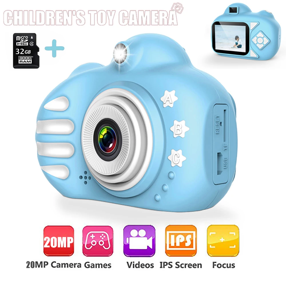 Детская камера с мультипликационным принтом, милая вспышка 20 Мп HD, мини цифровая камера, детские игрушки, камера 2,4 дюйма, IPS экран для ребенка, подарок на день рождения