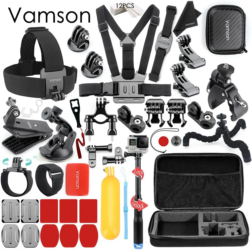 Vamson для экшн-камеры GoPro, комплект аксессуаров, водонепроницаемый чехол, набор для Go Pro Hero 8, черный аксессуар для экшн-камеры VS156
