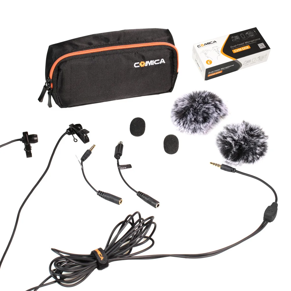 Digitalfoto Новый Портативный Dual Head петличный DSLR Камера микрофон для iphone Sony A7R, A6300 GoPro интервью, vlogging, youtube