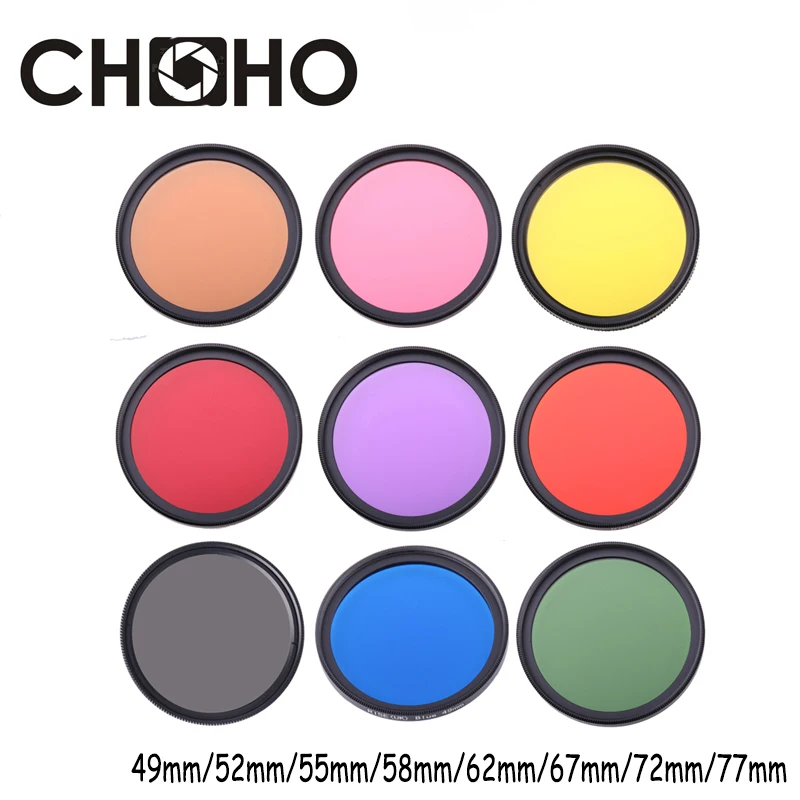 Полноразмерный цветной фильтр для объективов, полный красный, желтый, зеленый, синий, оранжевый, розовый, фиолетовый, все размеры для камер ...