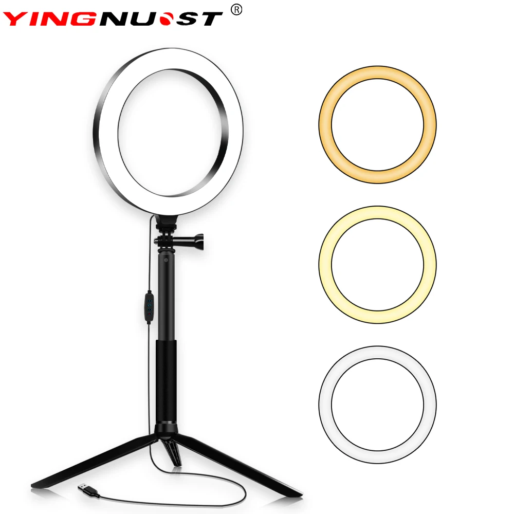 Светодиодная кольцевая лампа с регулируемой яркостью для селфи ,фотосъемки, Yutube Live Video Makeup.3500 K-5500 K, с штативом, телефонным держателем и USB кабель.