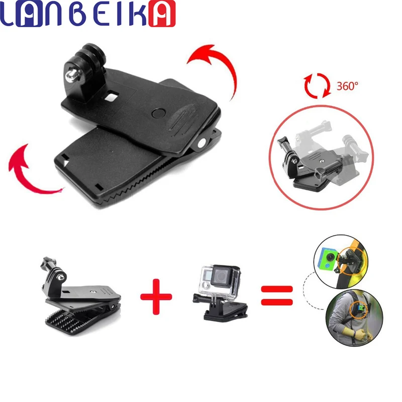 LANBEIKA гибкое крепление-зажим для рюкзака ремня шляпы 360 градусов вращения для GoPro Hero 7 6 5 4 3 + SJCAM SJ4000 SJ5000 SJ6 SJ7 YI