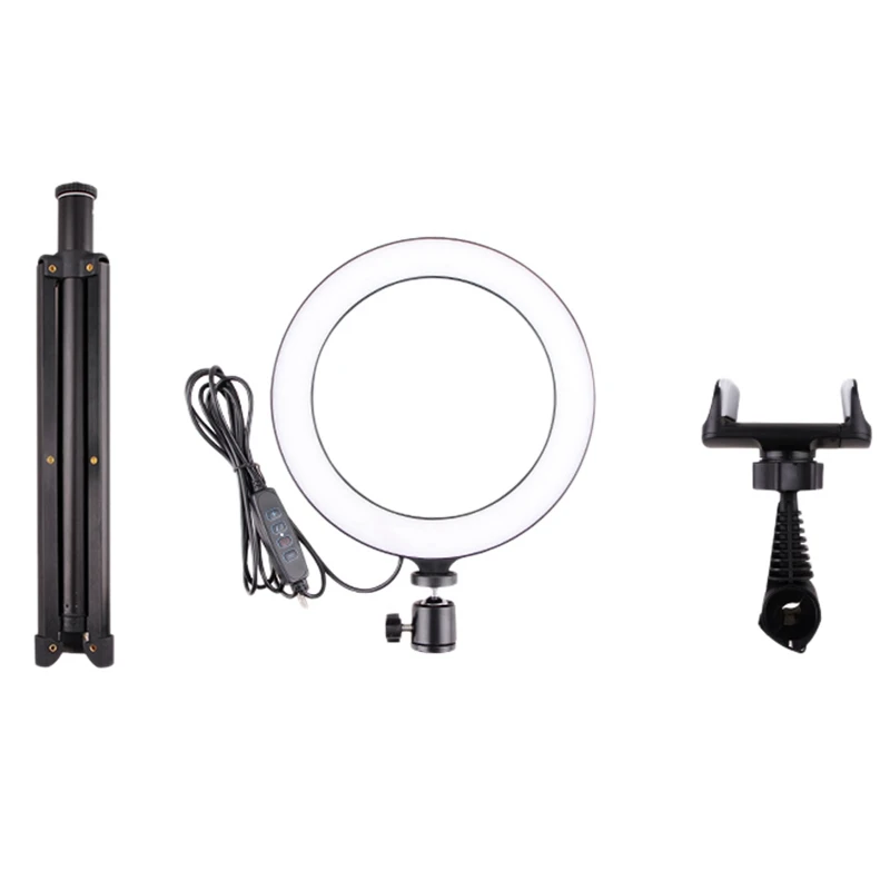 HFES 10 дюймов селфи светодиодный кольцевой светильник со штативом и держателем для сотового телефона настольная лампа мини светодиодный све...