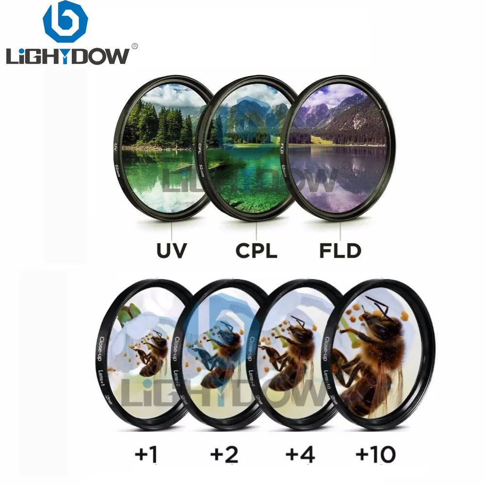 Lightdow 7 в 1 объектив фильтр комплект крупным планом + 2 4 10 Фильтры UV CPL FLD Для Cannon Nikon sony Pentax OLYMPUS Leica Объективы фотоаппаратов