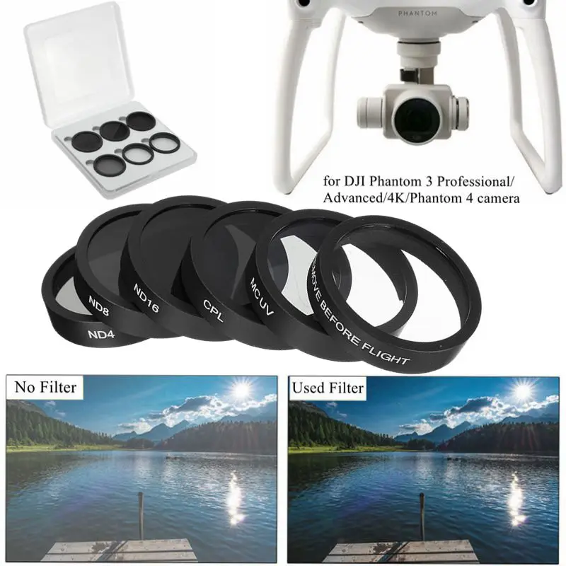 6 шт. Защита объектива камеры UV + CPL + ND4/8/16 для DJI Phantom 4/Phantom 3 Pro/Advanced RC438