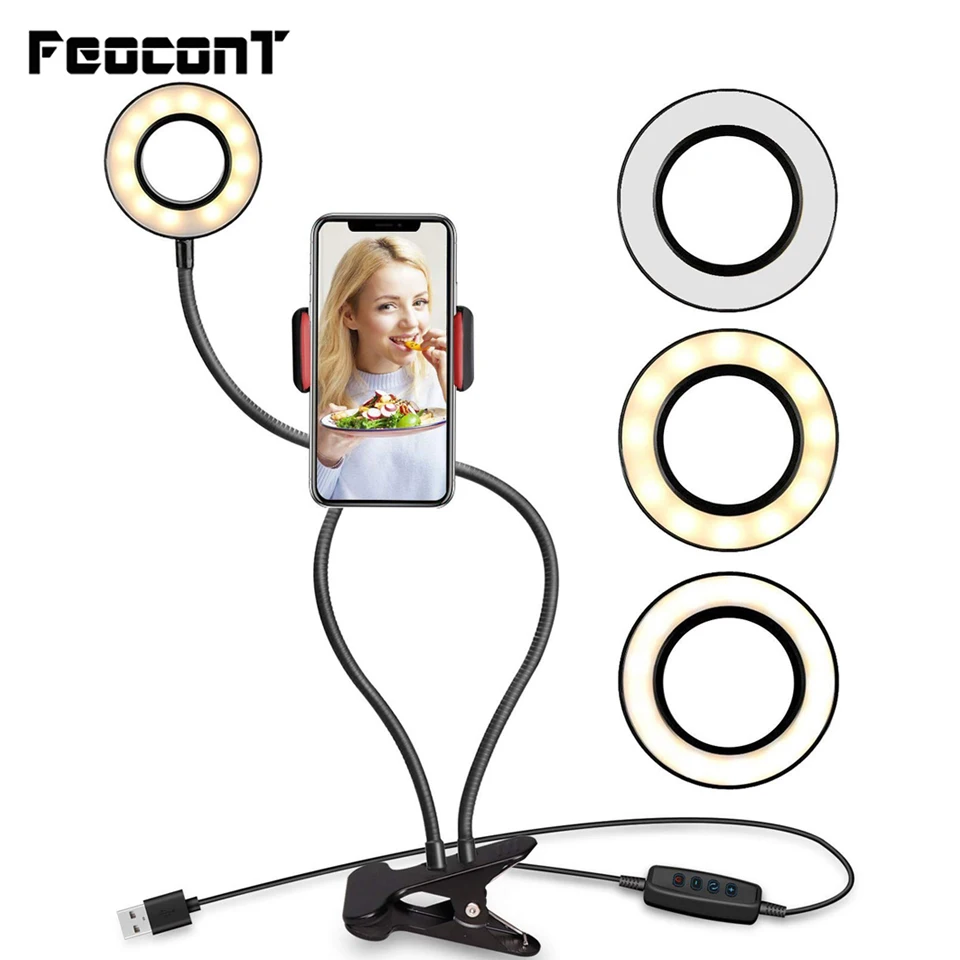 Универсальный кольцевой светильник для селфи с гибким держателем для мобильного телефона, настольная лампа с ленивым кронштейном, светодиодный светильник для офиса, кухни